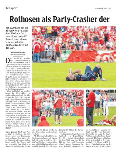 Vor 4500 Fans auf der Birkenwiese – davon über 3000 aus Graz – verhinderte der FC Dornbirn mit einem 1:1 den ersehnten Bundesliga-Aufstieg des GAK.