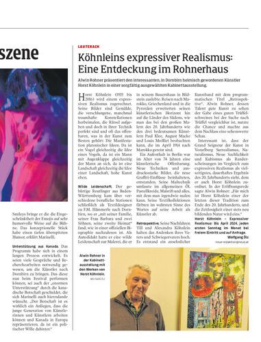 Alwin Rohner präsentiert den interessanten, in Dornbirn heimisch gewordenen Künstler Horst Köhnlein in einer sorgfältig ausgewählten Kabinettausstellung.