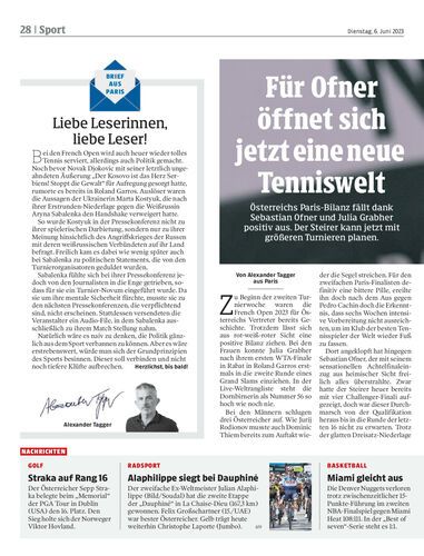 Österreichs Paris-Bilanz fällt dank Sebastian Ofner und Julia Grabher positiv aus. Der Steirer kann jetzt mit größeren Turnieren planen.