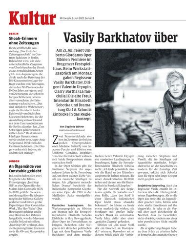 Am 21. Juli feiert Umberto Giordanos Oper Sibirien Premiere im Bregenzer Festspielhaus. Beim Werkstattgespräch am Montag gaben Regisseur Vasily Barkhatov, Dirigent Valentin Uryupin, Clarry Bartha (La fanciulla | Die alte Frau), Intendantin Elisabeth Sobotka und Dramaturg Olaf A. Schmitt Einblicke in das Regiekonzept.