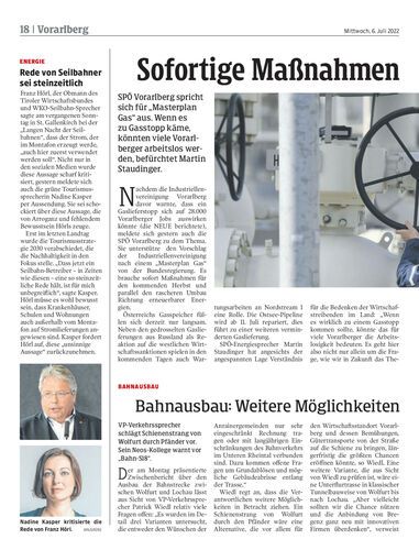 SPÖ Vorarlberg spricht sich für „Masterplan Gas“ aus. Wenn es zu Gasstopp käme, könnten viele Vorarlberger arbeitslos werden, befürchtet Martin Staudinger.