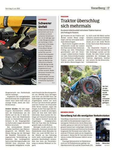 Zu einem Arbeitsunfall mit einem Traktor kam es am Freitag in Fraxern.