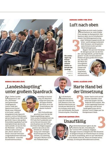 Nicht nur die Vorarlberger Schüler erhielten diese Woche ihre Jahreszeugnisse. Auch die Landesregierung wird von der NEUE am Sonntag beurteilt - verbal und mit einer Ziffernnote.