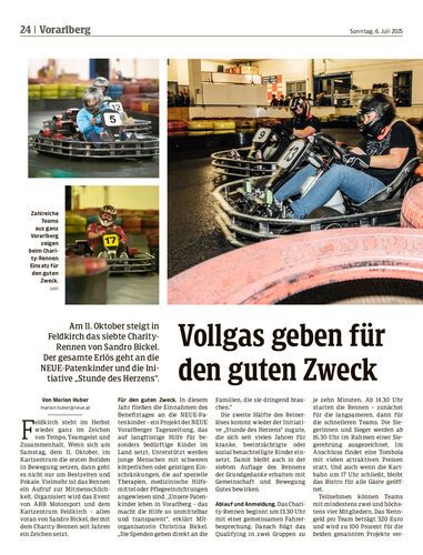 Am 11. Oktober steigt in Feldkirch das siebte Charity-Rennen von Sandro Bickel. Der gesamte Erlös geht an die NEUE-Patenkinder und die Initiative „Stunde des Herzens“.