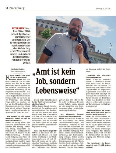 Interview. Markus Fäßler (SPÖ) ist seit April neuer Bürgermeister von Dornbirn. Der 45-Jährige über seinen überraschenden Wahlerfolg, erste Weichenstellungen im Amt und die Herausforderungen der Stadtpolitik.