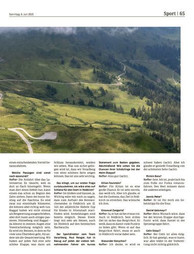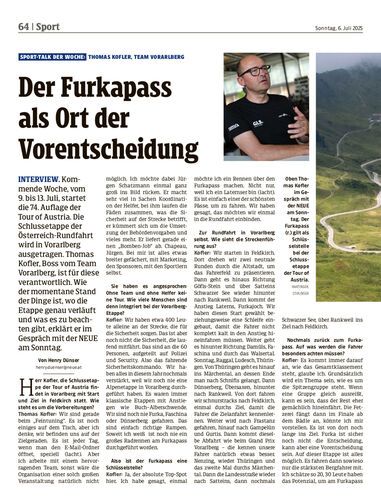 Interview. Kommende Woche, vom 9. bis 13. Juli, startet die 74. Auflage der Tour of Austria. Die Schlussetappe der Österreich-Rundfahrt wird in Vorarlberg ausgetragen. Thomas Kofler, Boss vom Team Vorarlberg, ist für diese verantwortlich. Wie der momentane Stand der Dinge ist, wo die Etappe genau verläuft und was es zu beachten gibt, erklärt er im Gespräch mit der NEUE am Sonntag.