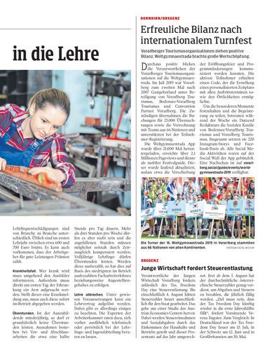 Vorarlberger Tourismusorganisationen ziehen positive Bilanz. Weltgymnaestrada brachte große Wertschöpfung.