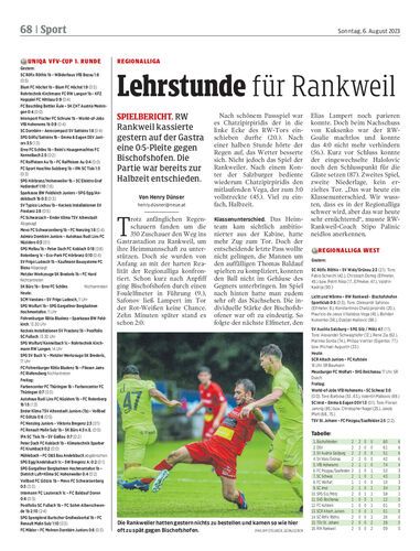 Spielbericht. RW Rankweil kassierte gestern auf der Gastra eine 0:5-Pleite gegen Bischofshofen. Die Partie war bereits zur Halbzeit entschieden.