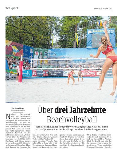 Vom 11. bis 13. August findet die Wolfurttrophy statt. Nach 34 Jahren ist das Sportevent an der Ach längst zu einer Institution geworden.