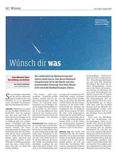 Der verlässlichste Meteorstrom des Jahres steht bevor. Das beste Beobachtungsfenster ist in der Nacht auf den kommenden Sonntag. Fast kein Mondlicht wird die Beobachtungen stören.