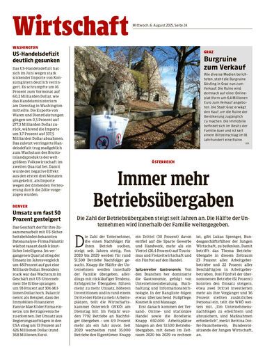 Die Zahl der Betriebsübergaben steigt seit Jahren an. Die Hälfte der Unternehmen wird innerhalb der Familie weitergegeben.
