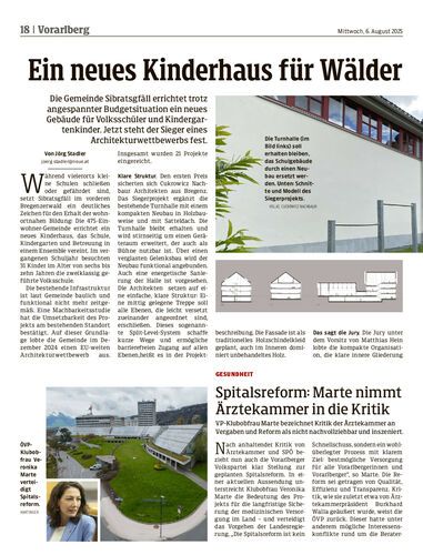 Die Gemeinde Sibratsgfäll errichtet trotz angespannter Budgetsituation ein neues Gebäude für Volksschüler und Kindergartenkinder. Jetzt steht der Sieger eines