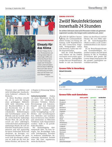 Aufgrund positiv getesteter Urlaubsrückkehrer steigen in Vorarlberg die Zahlen der Corona-Neuinfektionen wieder an – wenn auch nur langsam. In Absonderung befinden sich derzeit 261 Personen.