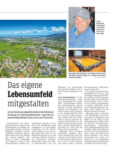 In der Kommunalpolitik haben Sachthemen Vorrang vor „Parteienhickhack“, sagt der Ex-Gemeindepolitiker Franz Lutz aus Frastanz.