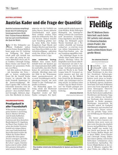 Austria Lustenau empfängt heute den FC Liefering zur Sonntagsmatinee (10.30 Uhr). Trainer Roman Mählich hat nur auf zwei Positionen die Qual der Wahl.
