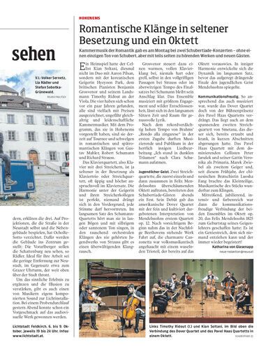 Kammermusik der Romantik gab es am Montag bei zwei Schubertiade-Konzerten – ohne einen einzigen Ton von Schubert, aber mit teils selten zu hörenden Werken und neuen Gästen.
