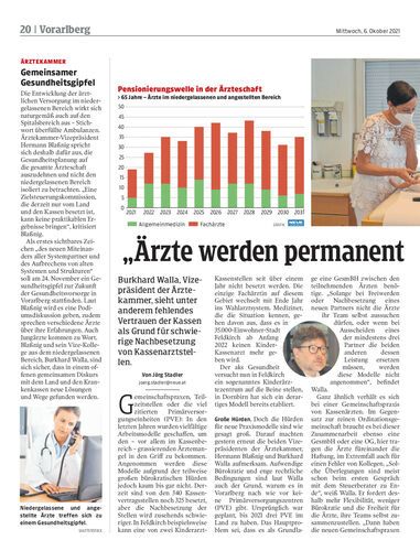 Burkhard Walla, Vizepräsident der Ärztekammer, sieht unter anderem fehlendes Vertrauen der Kassen als Grund für schwierige Nachbesetzung von Kassenarztstellen.