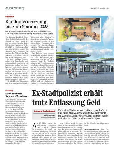 Vorläufige Einigung in Arbeitsprozess: Abfertigung und drei Monatsentgelte. Polizist wurde im März entlassen, weil er damit gedroht haben soll, sich mit Dienstwaffe umzubringen.