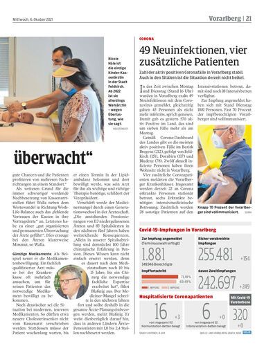 Zahl der aktiv positiven Coronafälle in Vorarlberg stabil. Auch in den Sitälern ist die Situation derzeit nicht heikel.