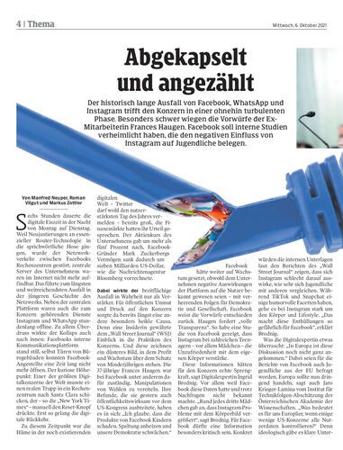 Der historisch lange Ausfall von Facebook, WhatsApp und Instagram trifft den Konzern in einer ohnehin turbulenten Phase. Besonders schwer wiegen die Vorwürfe der Ex- Mitarbeiterin Frances Haugen. Facebook soll interne Studien verheimlicht haben, die den negativen Einfluss von Instagram auf Jugendliche belegen.