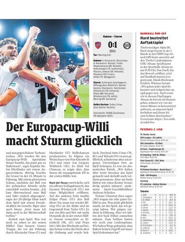 William Böving sorgte mit seinem insgesamt fünften Europa-Treffer für einen verdienten 1:0-Sieg des SK Sturm gegen Rakow Tschenstochau. Die Grazer liegen in Gruppe D auf Platz drei.