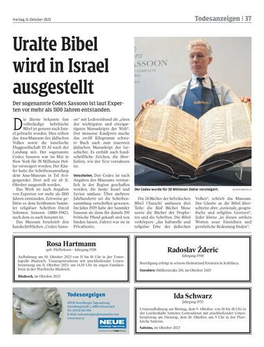 Der sogenannte Codex Sassoon ist laut Experten vor mehr als 1100 Jahren entstanden.