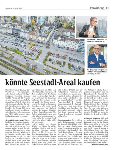 Die Besitzer des Bregenzer Seestadt-Areals können sich einen Verkauf vorstellen. Die Gespräche darüber laufen bereits.