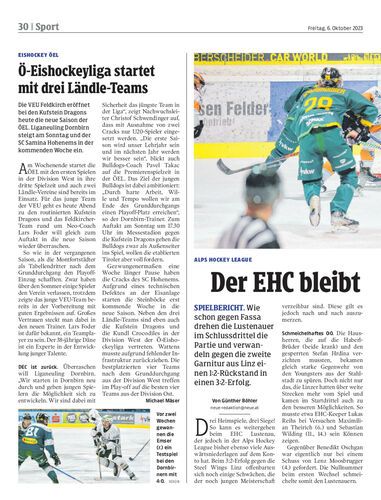 Die VEU Feldkirch eröffnet bei den Kufstein Dragons heute die neue Saison der ÖEL. Liganeuling Dornbirn steigt am Sonntag und der SC Samina Hohenems in der kommenden Woche ein.