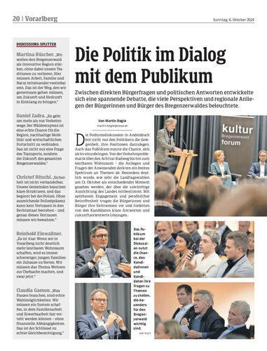 Zwischen direkten Bürgerfragen und politischen Antworten entwickelte sich eine spannende Debatte, die viele Perspektiven und regionale Anliegen der Bürgerinnen und Bürger des Bregenzerwaldes beleuchtete.