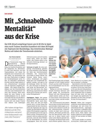 Der SCR Altach empfängt heute um 14.30 Uhr in Spiel eins nach Trainer Joachim Standfest mit dem SK Rapid ein Topteam der Bundesliga. Das Interimsduo Mahop/Nuhiu soll dabei die Trendwende einleiten.