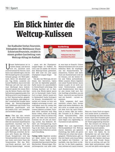 Der Radballer Stefan Feurstein, Feldspieler des Weltklasse-Duos Schnetzer/Feurstein, erzählt in einem großen Gastbeitrag vom Weltcup-Alltag im Radball.