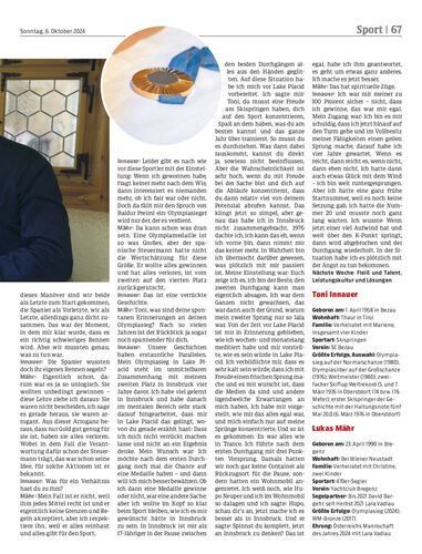 Gespräch. Auf Initiative der NEUE trafen sich am 20. September im Hotel „Die Krone von Lech“ die beiden Vorarlberger Olympiasieger Toni Innauer (66) und Lukas Mähr (34). Die beiden Champions waren sich davor noch nie begegnet, trotzdem entwickelte sich in Minutenschnelle ein angeregtes Gespräch in privater Atmosphäre, das von NEUE-Sportchef Hannes Mayer begleitet und punktuell moderiert wurde. Teil zwei des über zweistündigen, denkwürdigen Gesprächs.