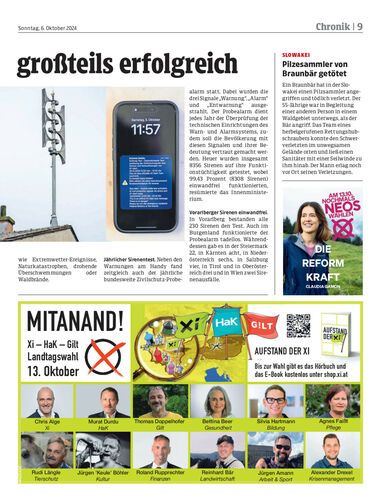In ganz Österreich wurden gestern die Sirenen und erstmals auch das neue Katastrophen-Warnsystem „AT-Alert“ auf die Probe gestellt. In Vorarlberg bestanden alle Sirenen den Test.