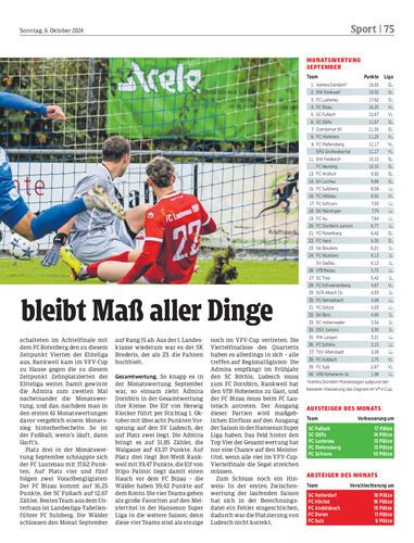Admira Dornbirn bleibt in der Gesamtwertung an der Spitze der Hansesun Super Liga. Auch die September-Wertung geht an die Klocker-Elf, allerding denkbar knapp.
