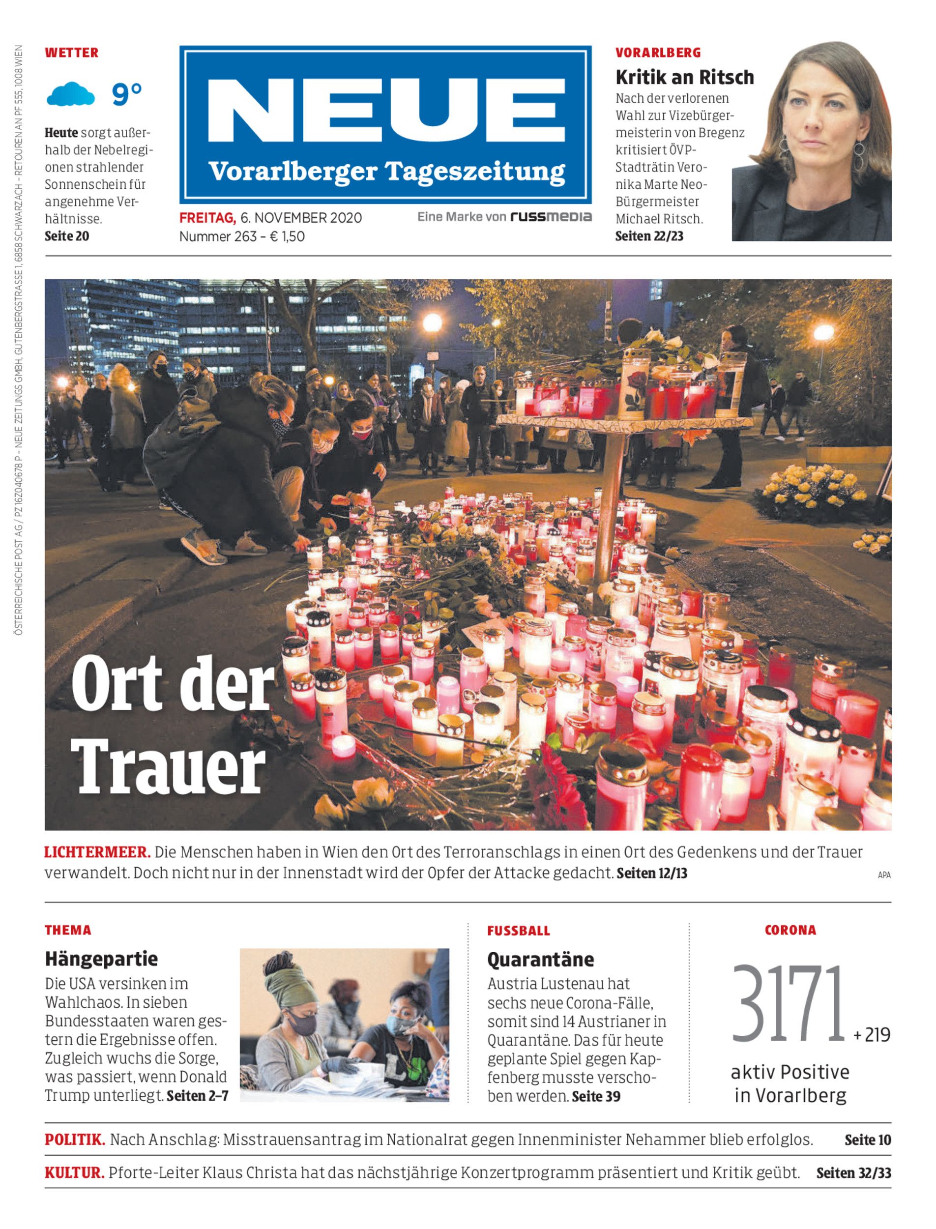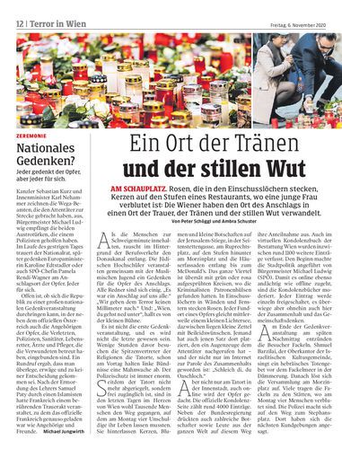 Lichtermeer. Die Menschen haben in Wien den Ort des Terroranschlags in einen Ort des Gedenkens und der Trauer verwandelt. Doch nicht nur in der Innenstadt wird der Opfer der Attacke gedacht. Seiten 12/13 APA