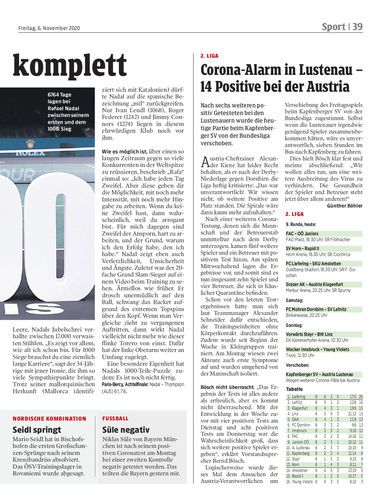 Nach sechs weiteren positiv Getesteten bei den Lustenauern wurde die heutige Partie beim Kapfenberger SV von der Bundesliga verschoben.