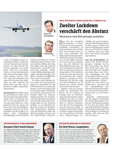 Die zweite Coronawelle ist für die AUA eine Katastrophe. Bei einem „halbwegs normalen Sommer“ 2021 wird das staatliche Hilfspaket ausreichen, sonst nicht.