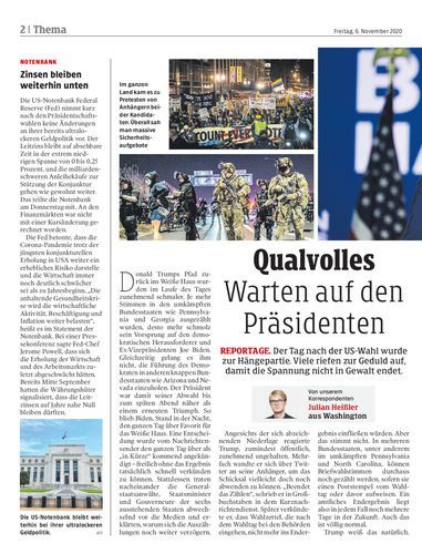 Reportage. Der Tag nach der US-Wahl wurde zur Hängepartie. Viele riefen zur Geduld auf, damit die Spannung nicht in Gewalt endet.