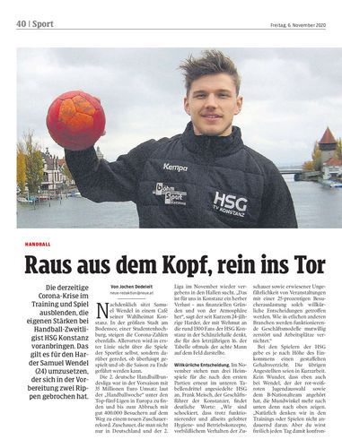 Die derzeitige Corona-Krise im Training und Spiel ausblenden, die eigenen Stärken bei Handball-Zweitligist HSG Konstanz voranbringen. Das gilt es für den Harder Samuel Wendel (24) umzusetzen, der sich in der Vorbereitung zwei Rippen gebrochen hat.