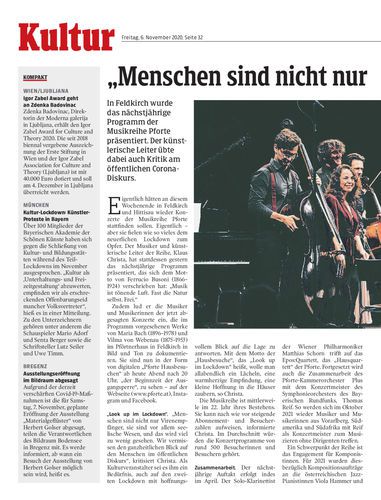 In Feldkirch wurde das nächstjährige Programm der Musikreihe Pforte präsentiert. Der künstlerische Leiter übte dabei auch Kritik am öffentlichen Corona-Diskurs.