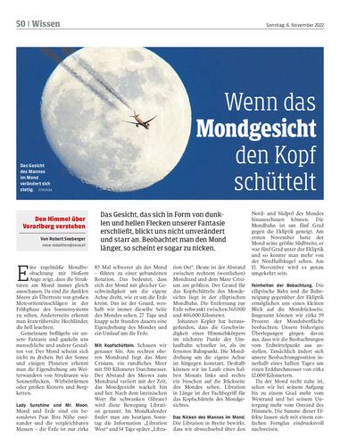 Das Gesicht, das sich in Form von dunklen und hellen Flecken unserer Fantasie erschließt, blickt uns nicht unverändert und starr an. Beobachtet man den Mond länger, so scheint er sogar zu nicken.