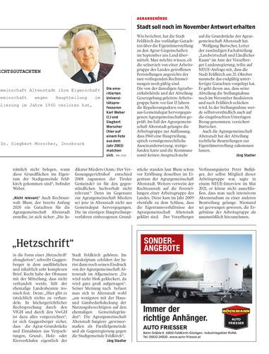 Schlacht der Rechtsexperten in Feldkircher Agrar-Causa: Emeritierter Universitätsprofessor hält die Argumente des von der Stadt beauftragten Gutachters für rechtlich verfehlt.