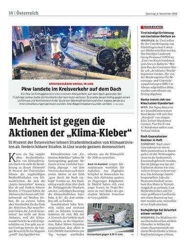55 Prozent der Österreicher lehnen Straßenblockaden von Klimaaktivisten ab, fordern höhere Strafen. In Linz wurde gestern demonstriert.