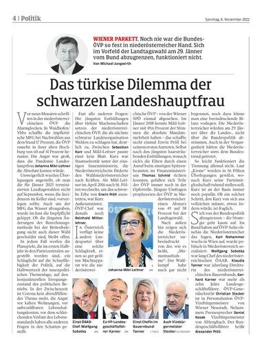 wiener parkett. Noch nie war die Bundes-ÖVP so fest in niederösterreicher Hand. Sich im Vorfeld der Landtagswahl am 29. Jänner vom Bund abzugrenzen, funktioniert nicht. Von Michael Jungwirth