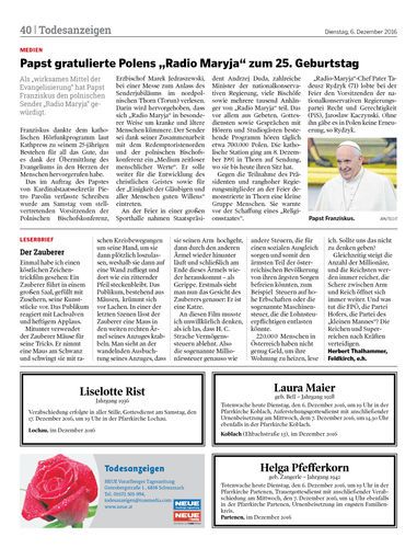 Als „wirksames Mittel der Evangelisierung“ hat Papst Franziskus den polnischen Sender „Radio Maryja“ gewürdigt.
