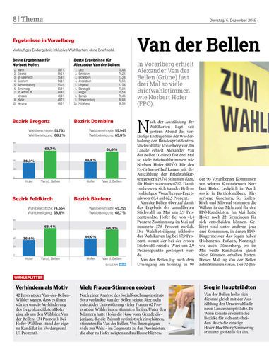 In Vorarlberg erhielt Alexander Van der Bellen (Grüne) fast drei Mal so viele Briefwahlstimmen wie Norbert Hofer (FPÖ).