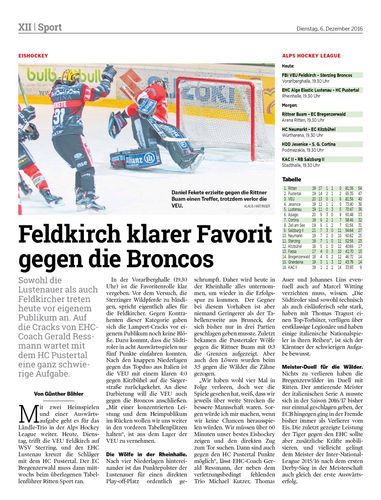 Sowohl die Lustenauer als auch Feldkircher treten heute vor eigenem Publikum an. Auf die Cracks von EHC-Coach Gerald Ressmann wartet mit dem HC Pustertal eine ganz schwierige Aufgabe.