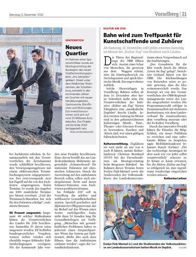Ab Samstag, 10. Dezember, rollt jeden zweiten Samstag im Monat der „Kultur-Zug“ von Bludenz nach Lindau.