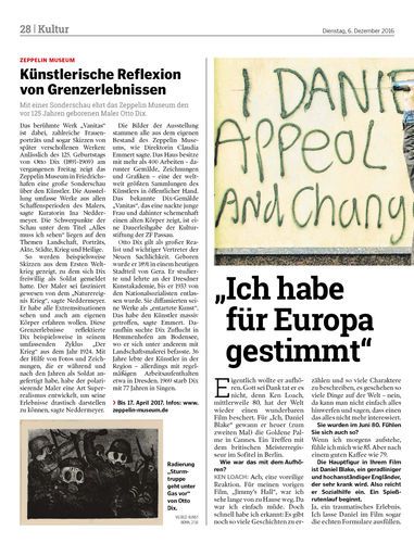Mit einer Sonderschau ehrt das Zeppelin Museum den vor 125 Jahren geborenen Maler Otto Dix.