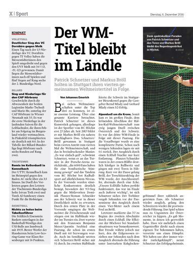 Patrick Schnetzer und Markus Bröll holten in Stuttgart ihren vierten gemeinsamen Weltmeistertitel in Folge.